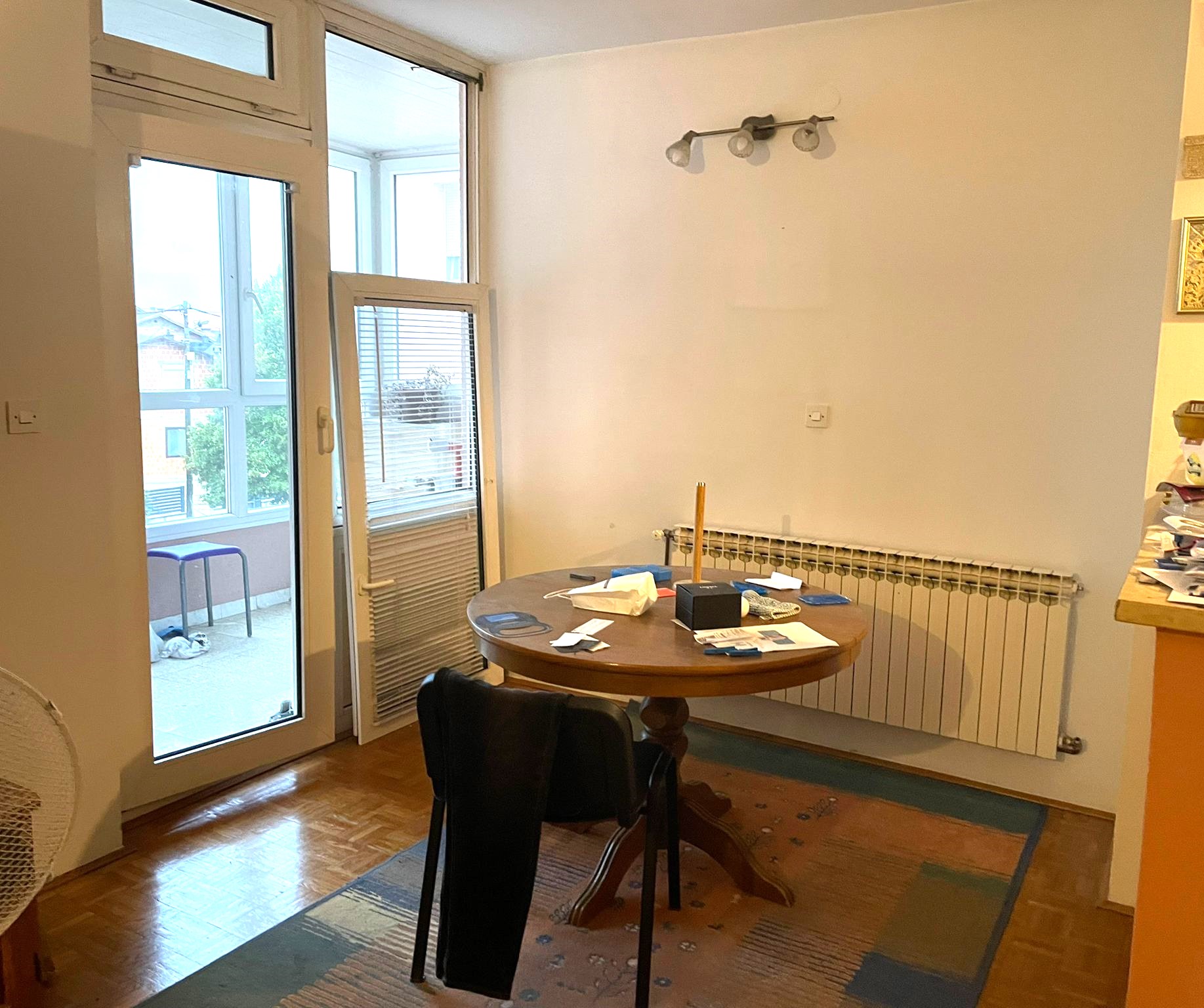 Prodaje se trosoban stan na drugom katu novije zgrade građene 1993 g. u Sesvetama. Sastoji se od ulaznog hodnika, kuhinje s blagovaonicom i dnevnim boravkom, jedne veće spavaće sobe, dvije manje spavaće seobe i kupaonice. Također ima loggiu koja je ostakljena, tako da se može uživati i u zimskim mjesecima. Orijentirana je na jugoistok.